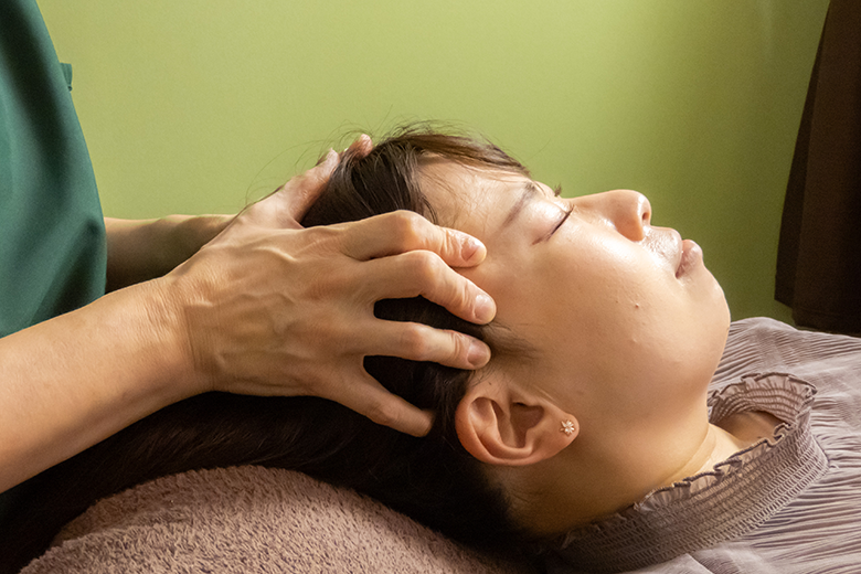頭皮をゆるめることで、眼精疲労・脳疲労・肩こり・不眠など“脳の疲れ”を深く癒します。