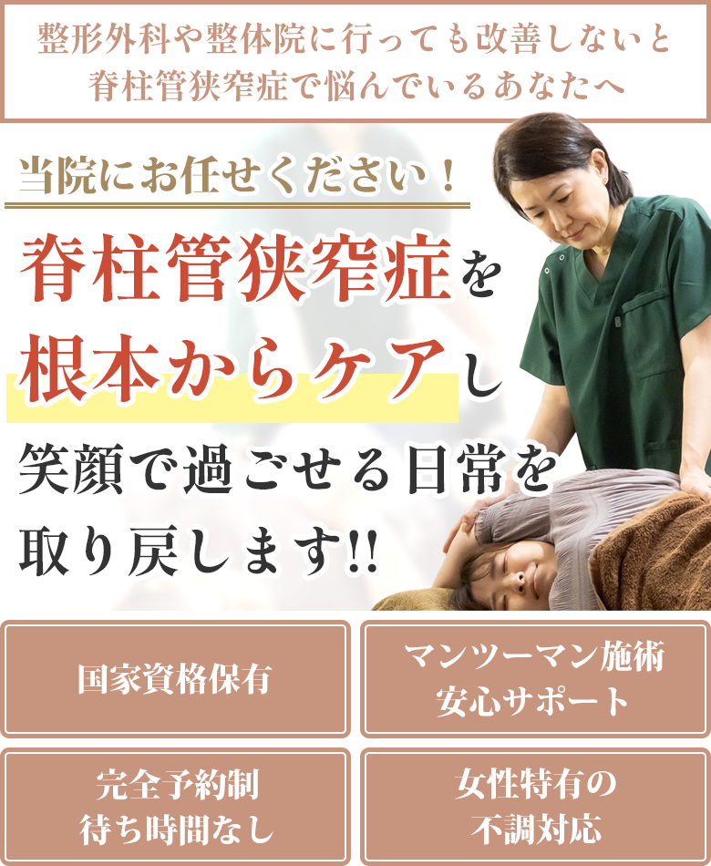 つまり、脊柱管そのものではなく、ゆがみをケアすることが改善への近道です。